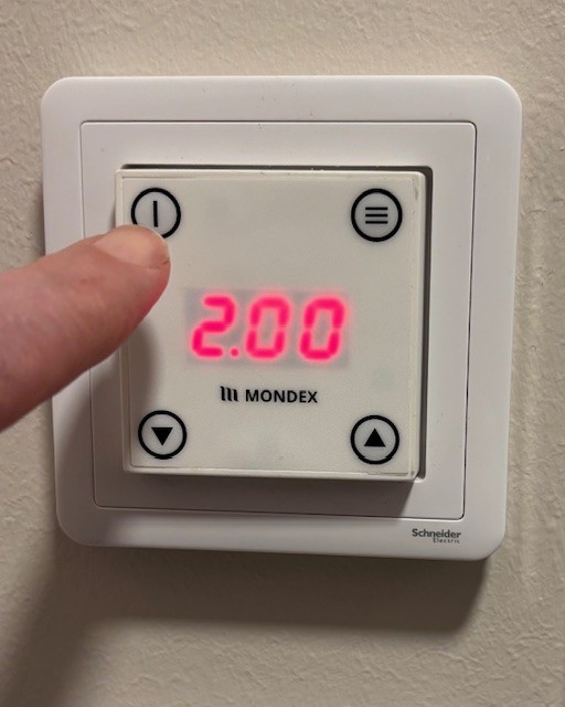 Äkäshiisi Lodge: Press and hold the power button on the control panel until the indicator light turns off (about 2 seconds).
