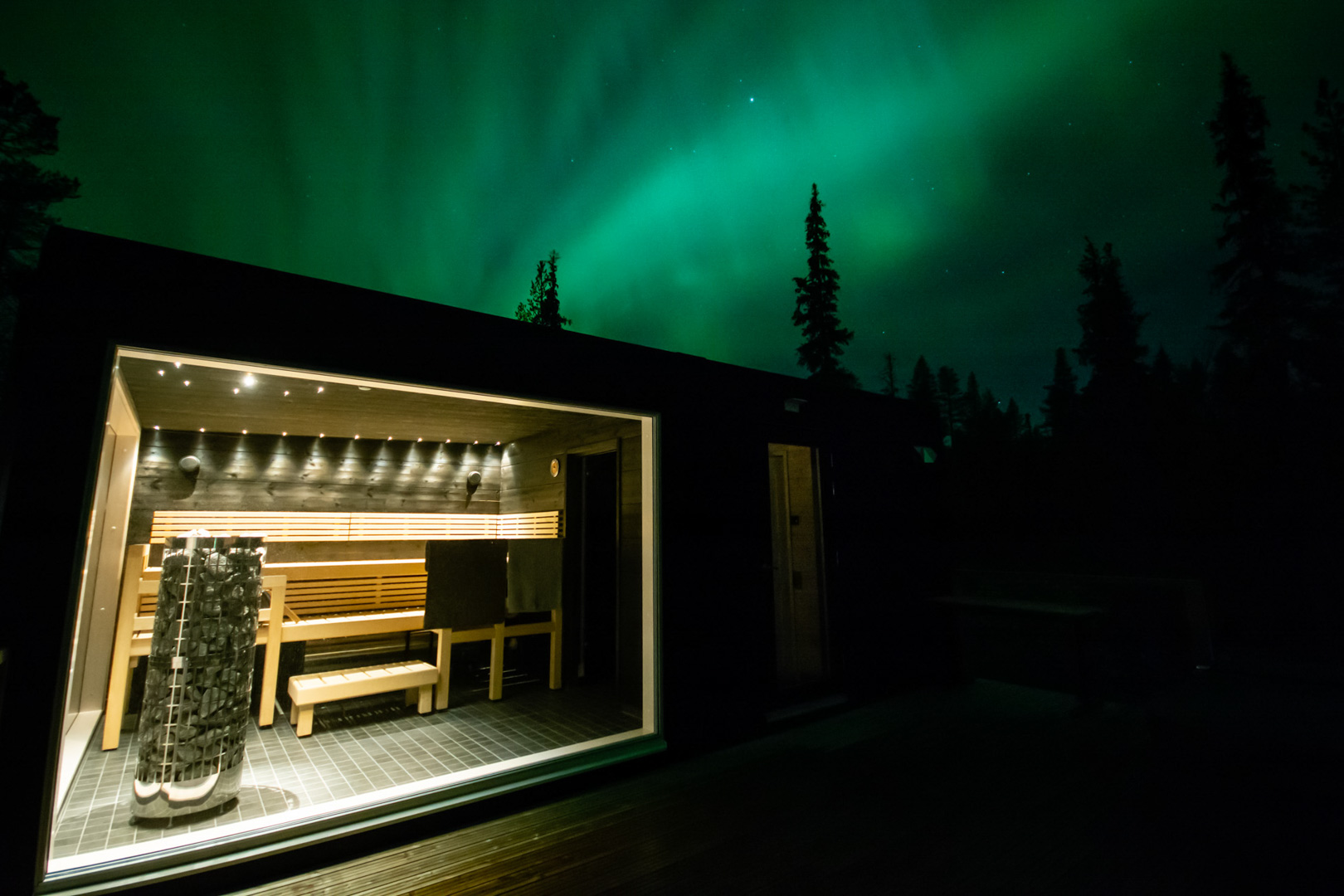 At Hiisi Lodge and ÄkäsHiisi Lodge, the sauna is part of the experience. Heat the stones, add a little water for gentle steam, and enjoy quiet moments surrounded by the peaceful spirit of Lapland.